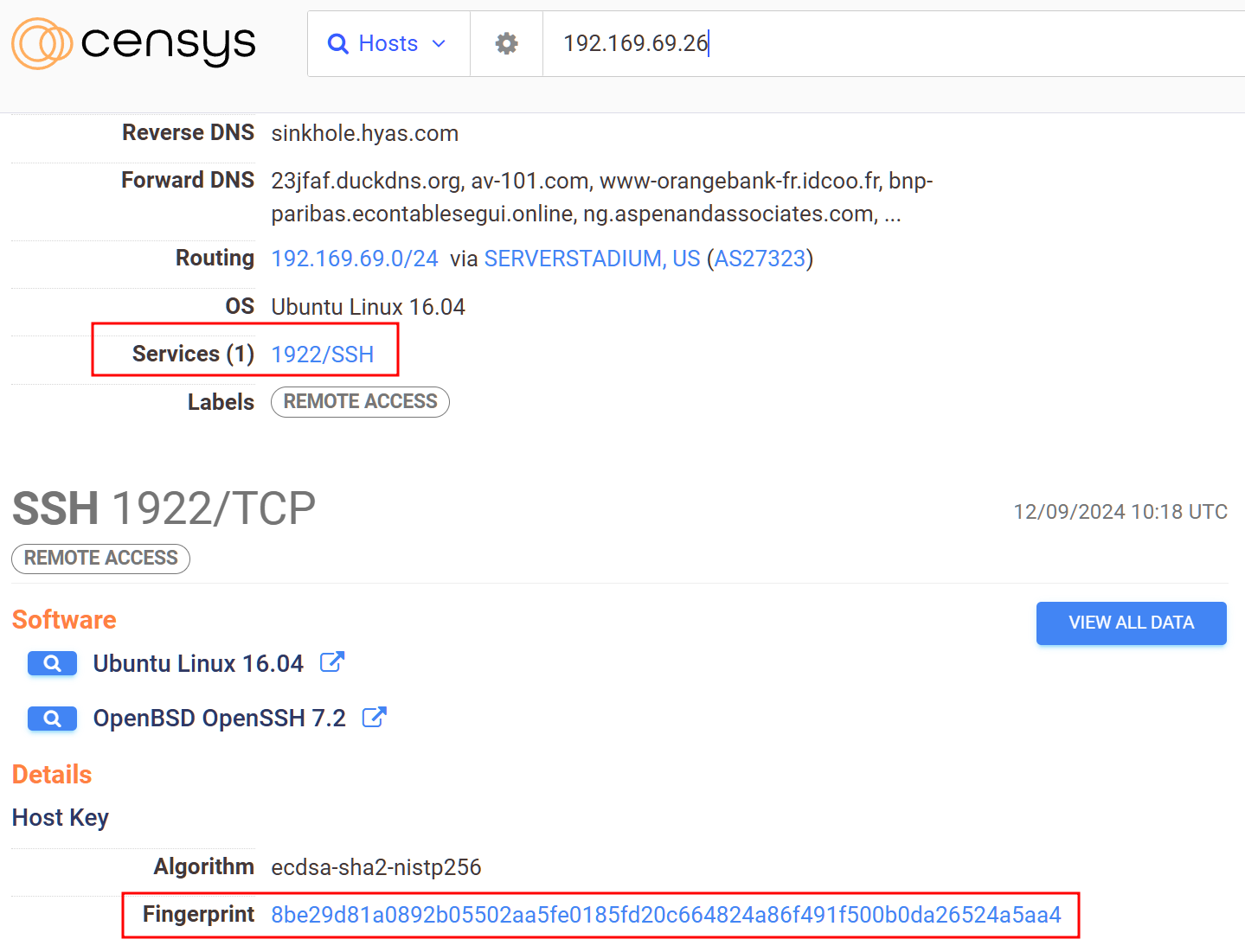Next IP is 192.169.69[.]26 AS27323 Wowrack.com, communicating with 14K files so I can’t really go through all of them. Instead I looked at the host using Censys.