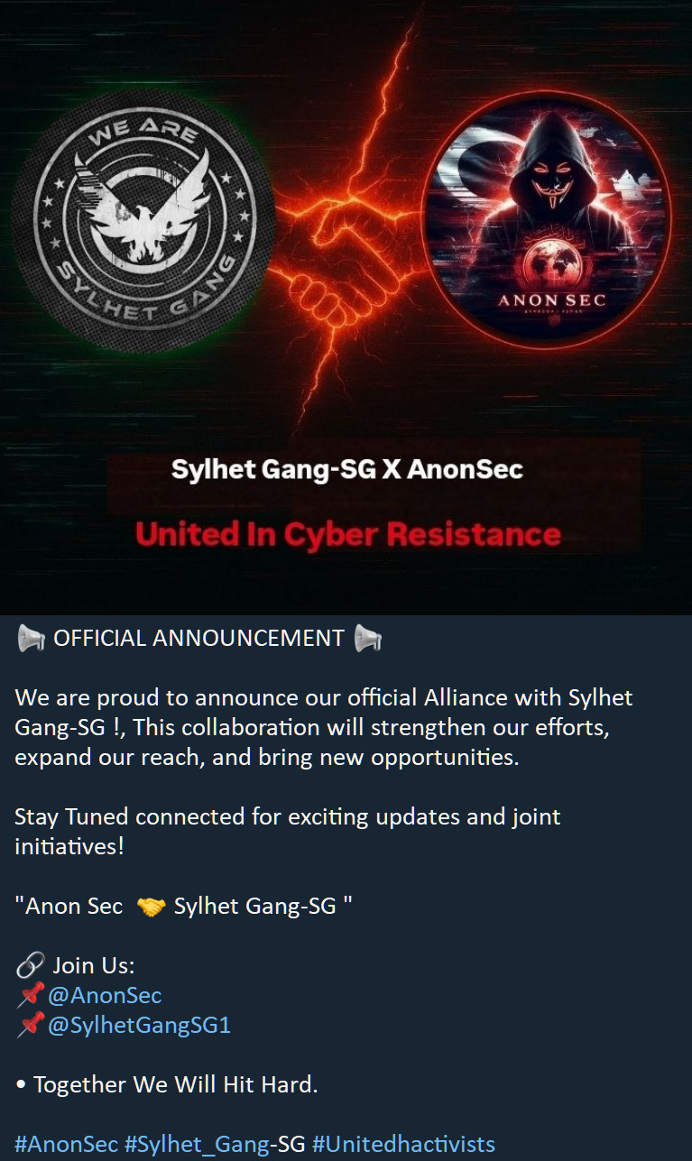 AnonSec is an English speaking collective that serves as a main hub for several alliances and groups often coordinating attacks between groups. They mainly attack using DDoS and deface websites mainly linked to organizations in India.